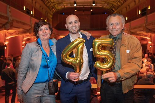 Foto: Office manager Myra Vandekerckhove, adjunct-directeur Thomas Tielemans en algemeen directeur Frans Claerhout tijdens het jaarfeest van Voka Oost-Vlaanderen 2022.